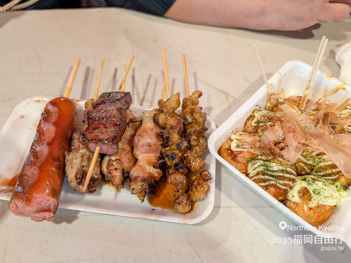 而且明明天氣不好,我們仨卻沒人記得帶傘,以致稍微淋了點雨,非常落魄,儘管如此,屋台美食還是治癒了我們,燒烤好好吃!
